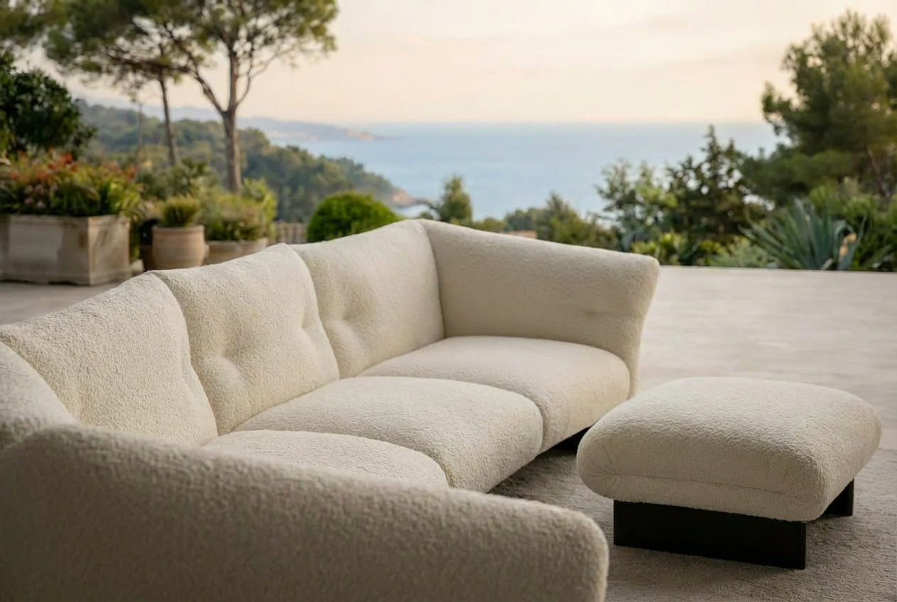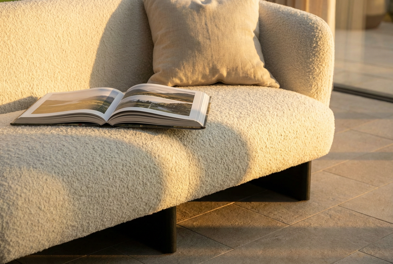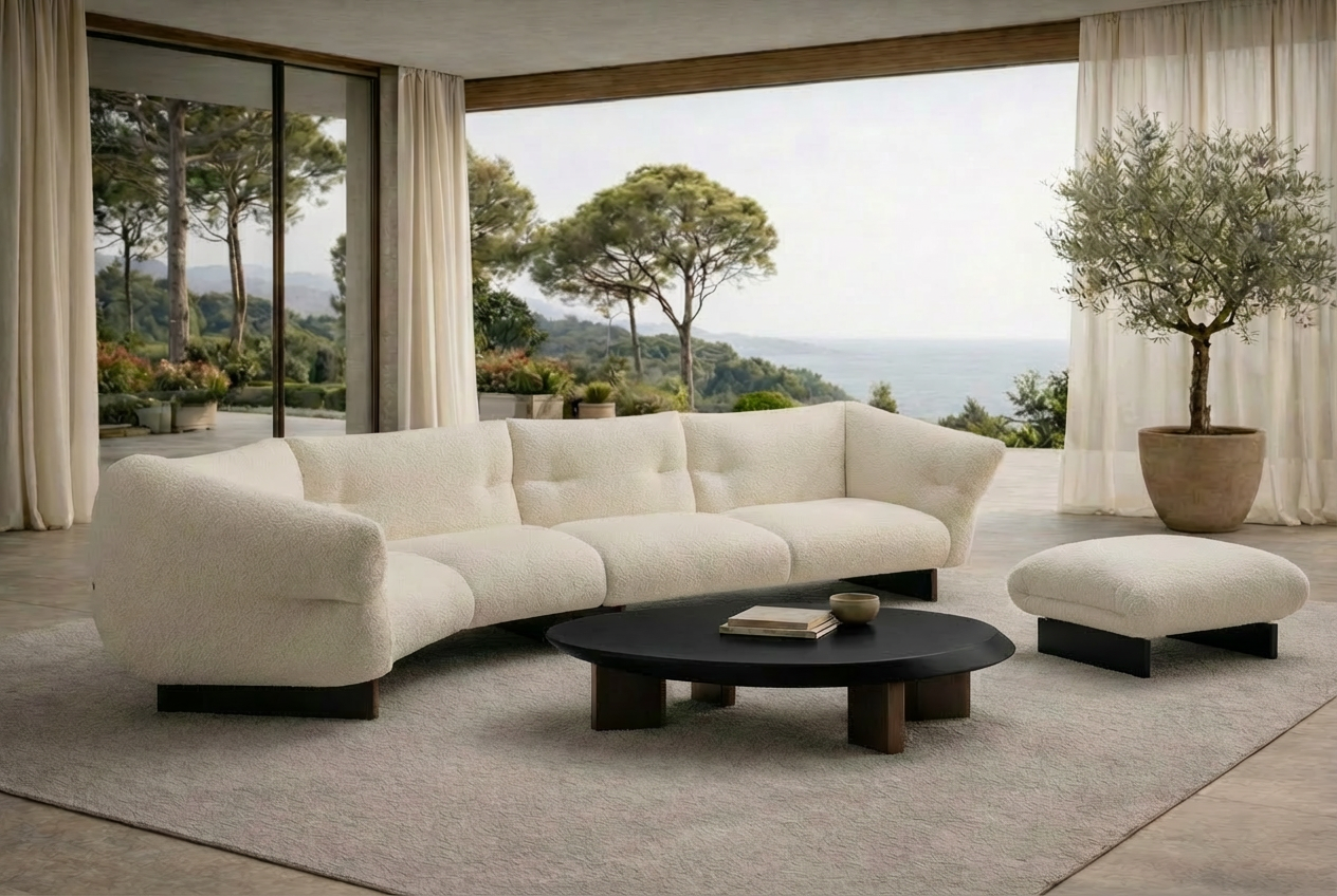 A plush composition shaped with soft geometry and peaceful form. It radiates a sense of calm, like sinking into the warmth of a winter morning. Its inviting curves feel protective and soothing. A quiet masterpiece of comfort and minimalistic grace.
