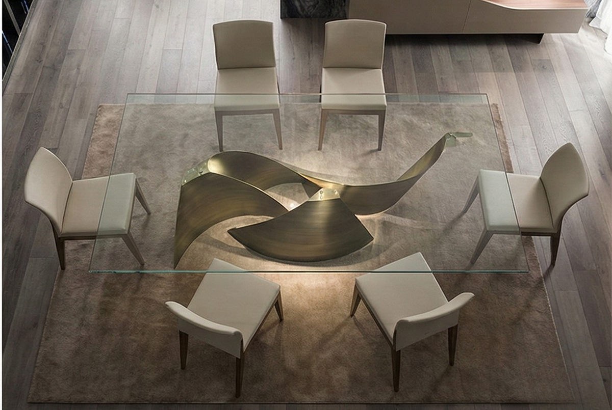 Inspired by Italian coastal curves, the Capri Wave Table captures motion and light. Its sculpted metallic base and glass top merge fluid design with functional luxury.
