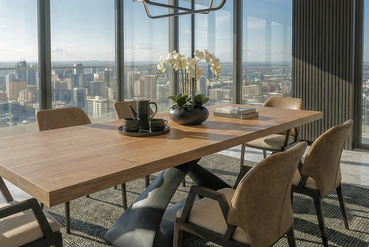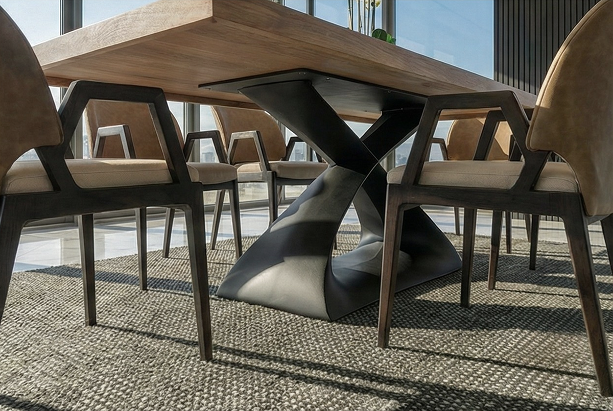 Inspired by the flow of Italian rivers, the Flowline Table embraces organic movement with a sculptural base that feels both grounded and fluid. A masterpiece of natural beauty and design harmony suitable to modern taste and high artistic expectations.