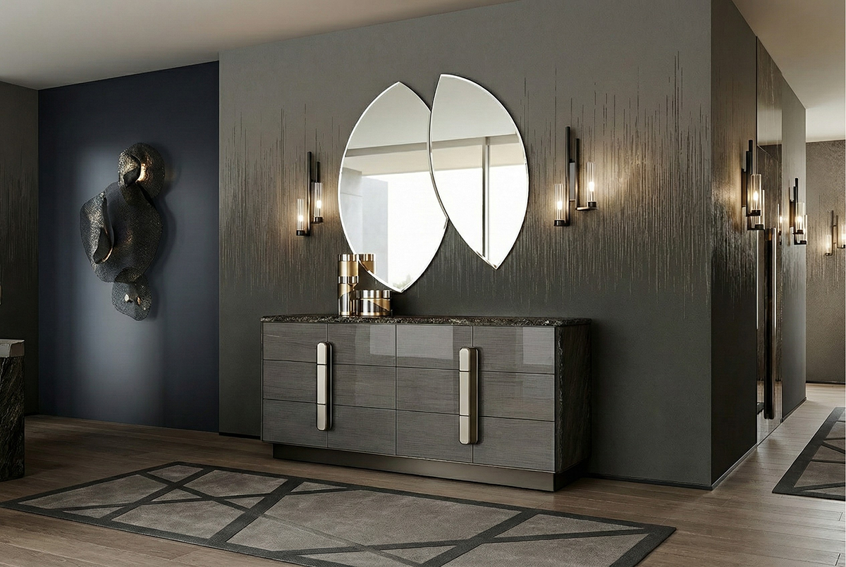 Inspired by the poetic balance of Italian geometry, this console is both functional and graceful, a masterpiece of reflection and proportion.