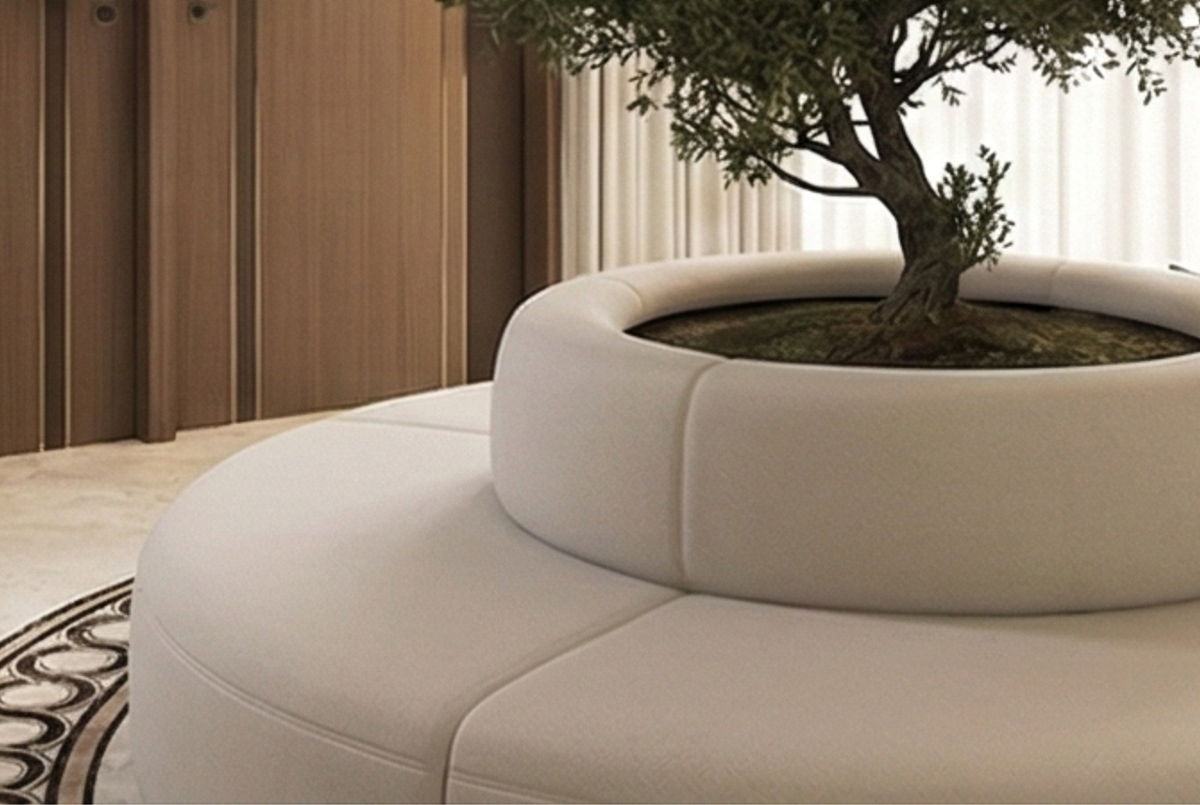 Embracing form with refined continuity. The Nucleo Avvolto Sofa is shaped as a soft circular volume with an inner ring that creates depth and enclosure. Its seamless geometry and generous cushioning make it a calm, architectural centerpiece designed to be experienced from every angle.