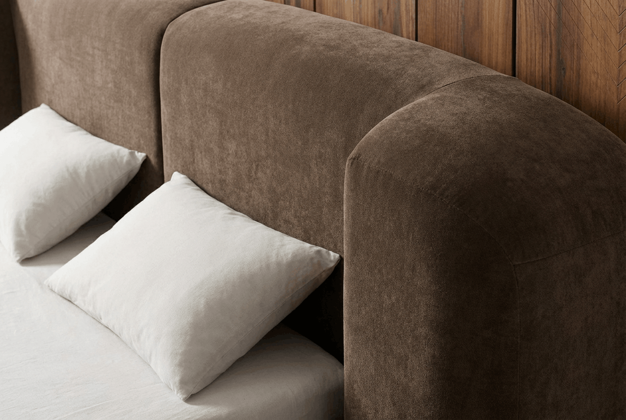 Inspired by the pulsing heart and the soaring skyline of Milan, this bed is a musical, silent symphony. Its playful verticals evoke rhythm and movement, while its rich Italian velvet and gradient tones reflect cosmopolitan energy and refined artistry, bringing modern luxury to life.