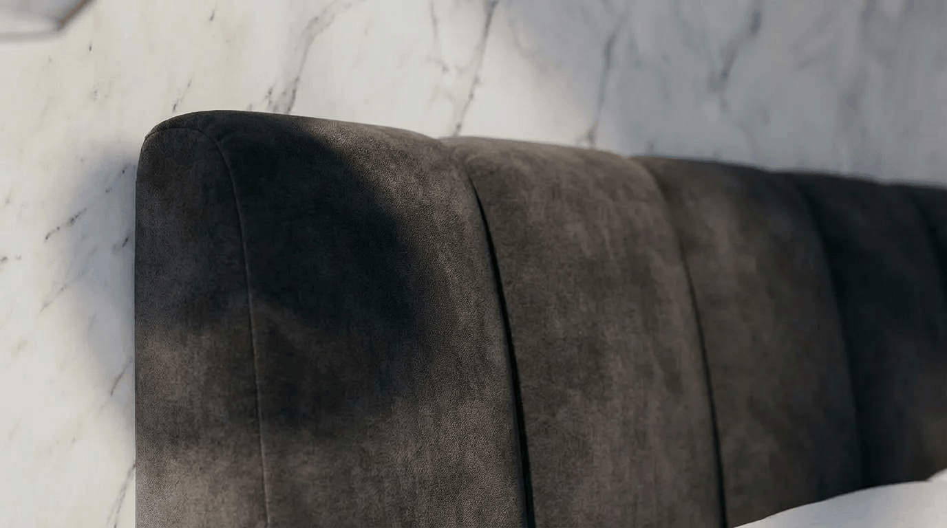 A low, sculptural presence that speaks in the subtle language of Italian refinement. Its smooth form feels like a quiet melody carved from shadow and softness. The rich upholstery folds gently into the room, creating an intimate corner of tranquility. A study in understated luxury, grounded in pure Italian style.
